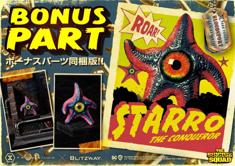 除了擁有雙頭雕陣容之外,這款血腥運動還附有豐富的手部、特製槍械替換零件,能夠展現多樣的變化性!在 Prime 1 Studio 官方商店購買還可以獲得「迷你斯塔羅(Starro)」喔。