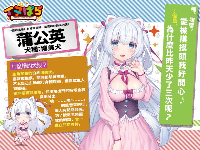 新作標題一樣簡單直白,就叫「INUPARA 犬娘樂園」,乍看是直接把貓娘樂園的角色們全部換成狗狗,但是仔細一看,卻會發現已經有相當用心的人設公開了?!
