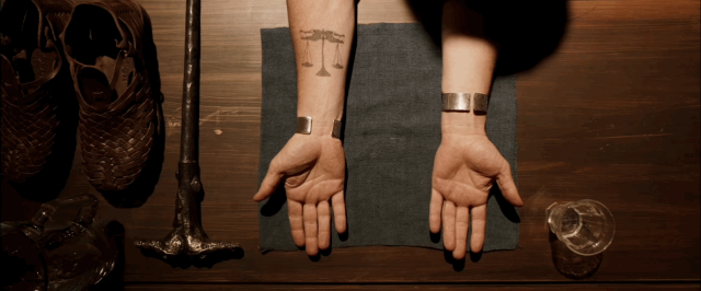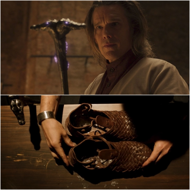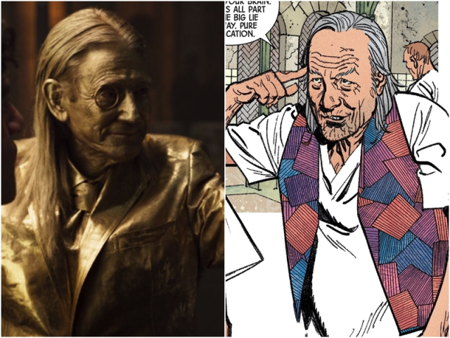影集一開場介紹了伊森·霍克飾演的邪教領袖 亞瑟哈洛 (Arthur Harrow),可以看到他將玻璃碎片放入靴子裡的苦行方式,對應了漫畫原作中是疼痛理論學家的設定。