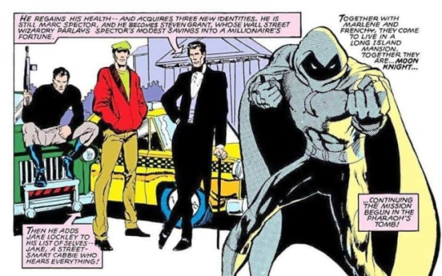 馬克在成為月光騎士後回到紐約,分離出另外兩個人格:富豪史蒂芬格蘭特 (Steven Grant) 和計程車運將 傑克拉克利 (Jake Lockley)。而《月光騎士》影集首集,就從史蒂芬格蘭特的人格視角,揭開MCU更趨詭異的篇章。順帶一提,本次的《月光騎士》故事不是依據原作設定在紐約而是英國。