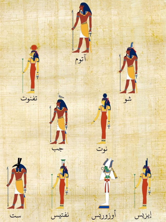 史蒂芬在倉庫裡看到「九柱神」(The Ennead) 的海報,然後又開始滔滔不絕。埃及神話中的「九柱神」分別是: