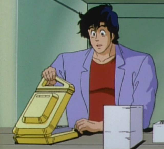 說到這裡,想問問各位電電小夥伴們,你們知道在下方圖片中,《城市獵人》冴羽獠手上拿的這塊黃色機器是什麼玩意兒嗎?不是烤吐司機、不是烤鬆餅機,當然也不是掃描機之類的產品,但這對於這樣的「迷之機器」,在網路上掀起了一陣熱論。
