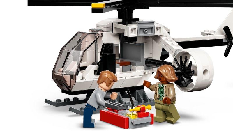 根據目前的所有盒組來看,本作是《侏羅紀世界:統霸天下》主題的最大盒組,零件數量來到 810 片,不但一次付給你兩隻重量級的恐龍樂高-巨型南美龍與鐮刀龍,還有推測是研究中心與瞭望台的建築,以及直升機、類似沙灘車的四輪車輛,值得一提的是人偶部分終於出現亞倫·葛蘭(Alan Grant)博士,另外還有歐文、克萊兒、艾莉、女飛行員凱拉·華茲(Kayla Watts),與遺傳學家亨利·吳。