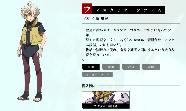 ▼ 《機動戰士鋼彈 鐵血孤兒 G》主角-ウィスタリオ・アファム