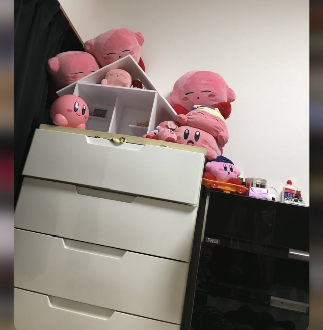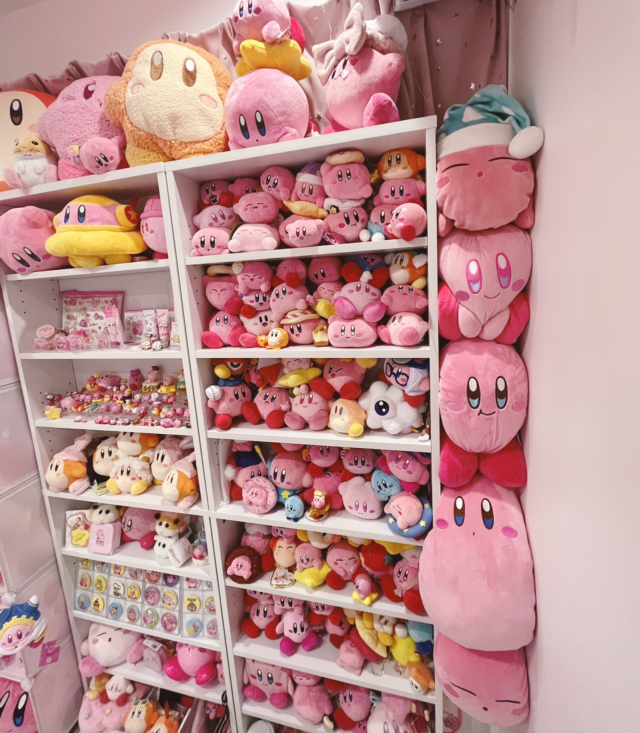 這是あぴ(@0418_kirby_)所布置的「卡比房間」,從圖片上看除了卡比、瓦豆魯迪等系列中常見角色外沒別的外來物了,完完全全就是只有卡比的房間,且櫃子上幾乎是每格都是塞滿滿,就連桌上、牆上,除了卡比還是卡比,可見是個狂熱的卡比粉。