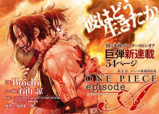 外傳漫畫《ONE PIECE episode A(エース)》是由曾在《週刊少年Jump》連載過《三首神鷹》、《扭曲的汞齊》等作的石山諒,以及《Dr.STONE 新石紀》繪師Boichi共同擔任,並由浜崎達也所撰寫的外傳小說《ONE PIECE novel A(エース)》進行改編繪製。