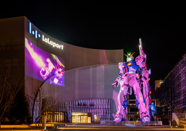 未來還會與商場「LaLaport 福岡」搭配,在晚上的時候展出獨具特色的燈光秀,目前確定會有「在與夏亞投下阿克西斯的攻防中、 阿姆羅與RX-93ff ν鋼彈將會如何應戰?」的場景燈光秀 ( 仍有其他的尚未公開 ),相信粉絲一定相當期待這會如何表現。( 可以看到連沙薩比都有不同的武裝 )
