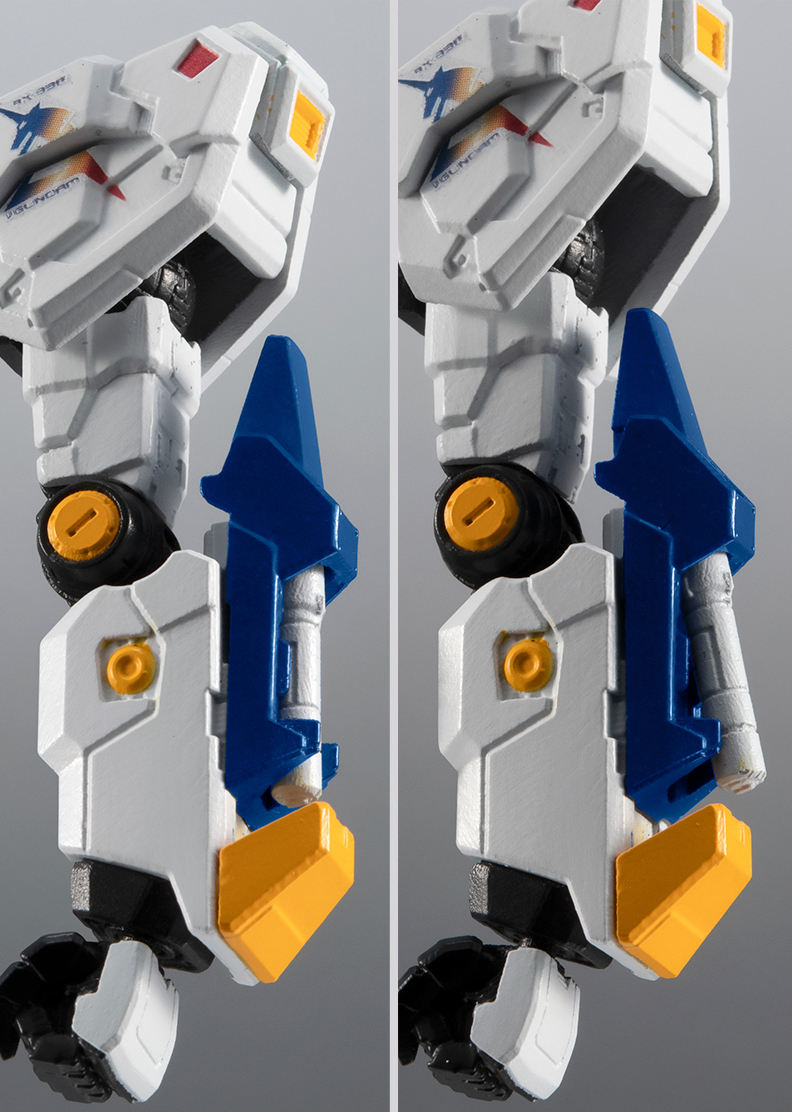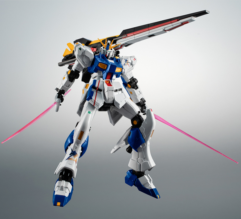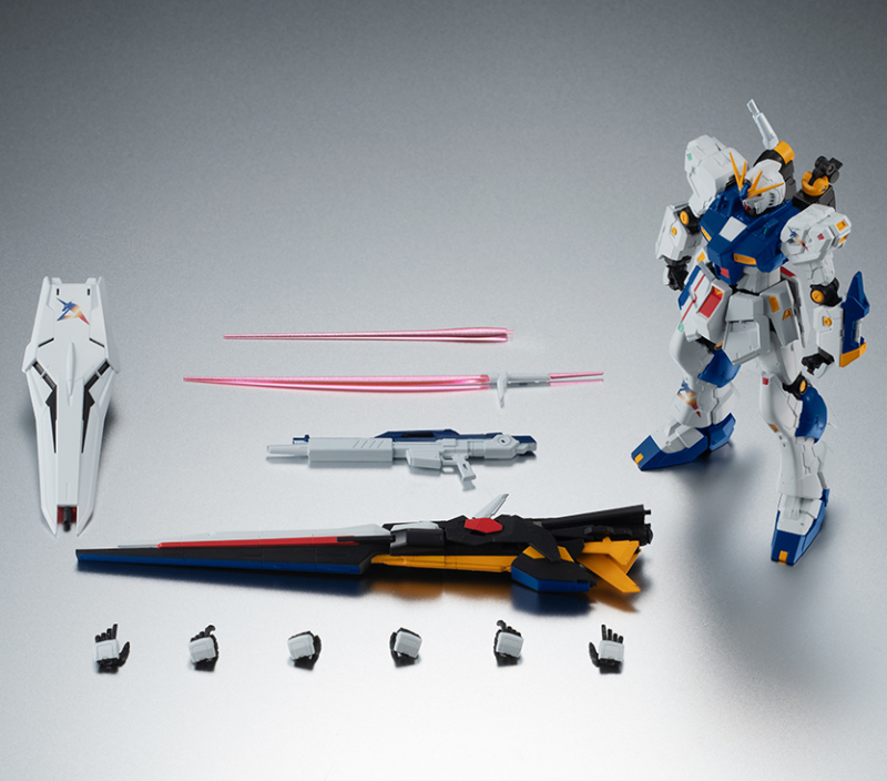 「長程翼狀感應砲」能藉由可動支架再現轉向前方的射擊狀態,或是如同特別影片般裝備於右手作為巨型光束軍刀使用,但可惜沒有展開機構能再現炮口展開的狀態。此外武裝還附上光束步槍、光束軍刀、盾牌等,搭配靈活可動把玩出戰鬥場景。