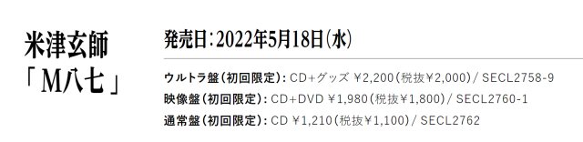 ▼ 米津玄師單曲「M87」預計將於 2022 年 5 月 18 日正式發行