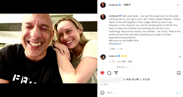 即將開拍的《玩命關頭 10》前陣子相繼網羅了擔任本集反派的「水行俠」傑森摩莫亞(Jason Momoa)、「捕鼠人 2」丹妮拉梅爾基奧(Daniela Melchior)兩位 DC 宇宙成員加入演出,而今天,身為《玩命關頭》系列大家長的馮迪索(Vin Diesel)則發文宣佈,他們還網羅了另一位漫威宇宙的班底 —「驚奇隊長」布莉拉森(Brie Larson)。