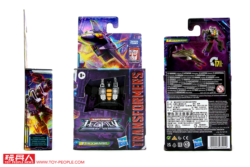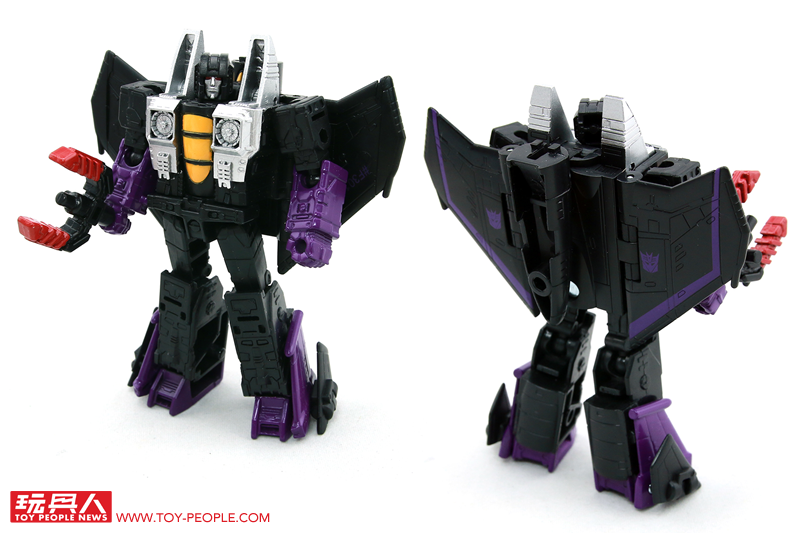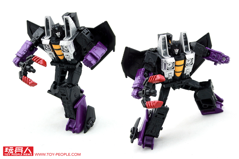 ▼「天彎」(Skywarp),隸屬於狂派(Decepticons)飛空武力-巡獵者小隊(Seeks)的核心成員,擅長以空間跳躍進行瞬移攻擊。本次的傳承版天彎是以王國版核心級天王星(Starscream)改色而來,可變形為黑紫色相間的戰鬥機,並附屬了原創的叉型武器。