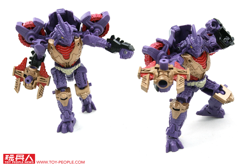 ▼附屬專屬的步槍和兩把透明紫塑料製成的能源刀,本體當然也還原了機器昆蟲的黑紫金三重配色,除此之外,以透明零件搭配精細造型的雙翅可說是相當搶眼。