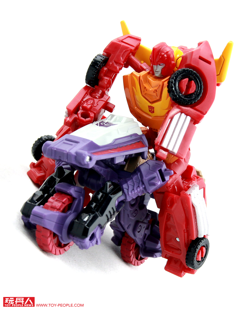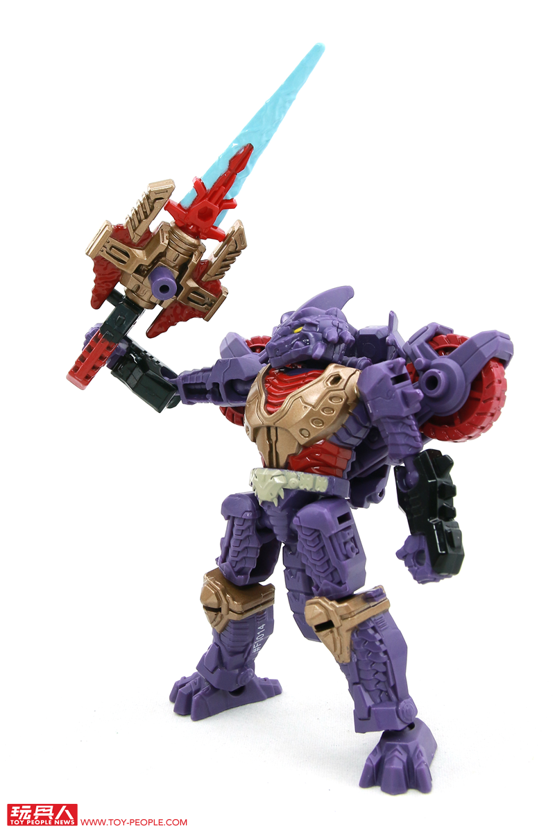▼「鬣蜥」(Iguanus),取材自G1同名的狂派隱者戰士(Pretender),對於能夠隱藏自身的鬣蜥外殼相當地癡迷。本次的傳承版核心級乃是將元祖本體的機車模式結合隱者的鬣蜥人外殼而生,可在兩種模式之間自由轉換,並附屬了原創的新武器,可與羅德、天彎的武器組合成更強大的巨劍。