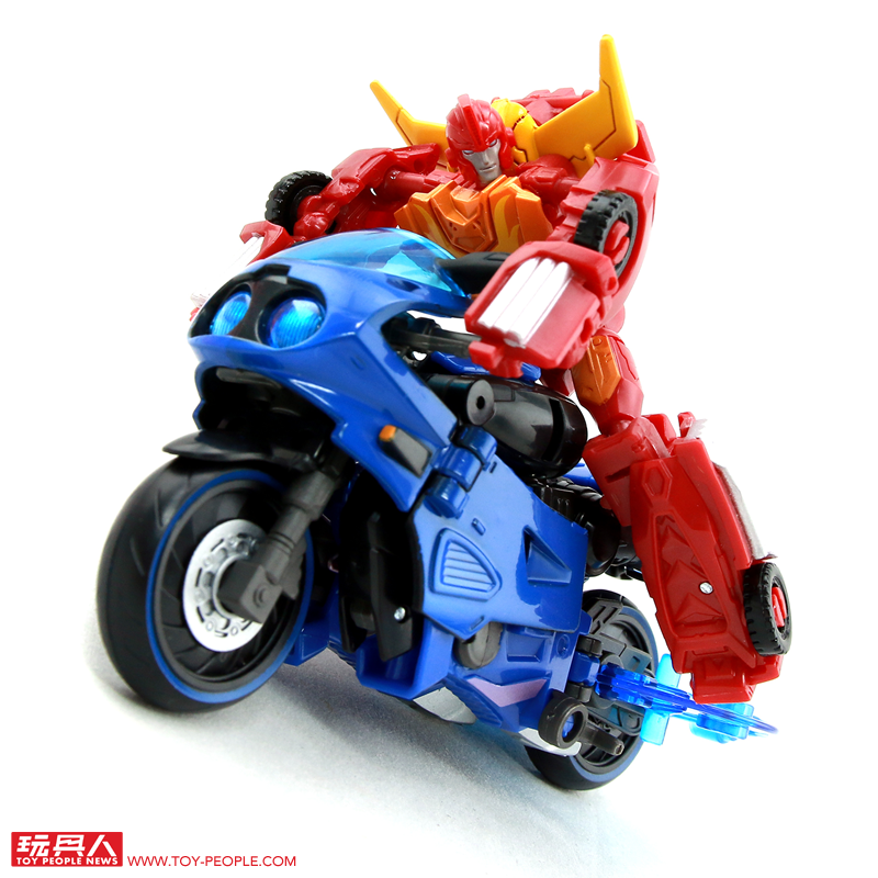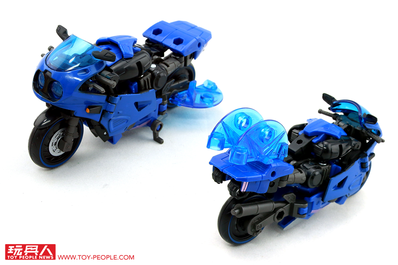 ▼機車模式,變形的過程比原本想像中的還要更加有趣,車型有點類似Kawasaki的Ninja ZX-7R,能量晶雙刃也能以兩種不同的方式收納。