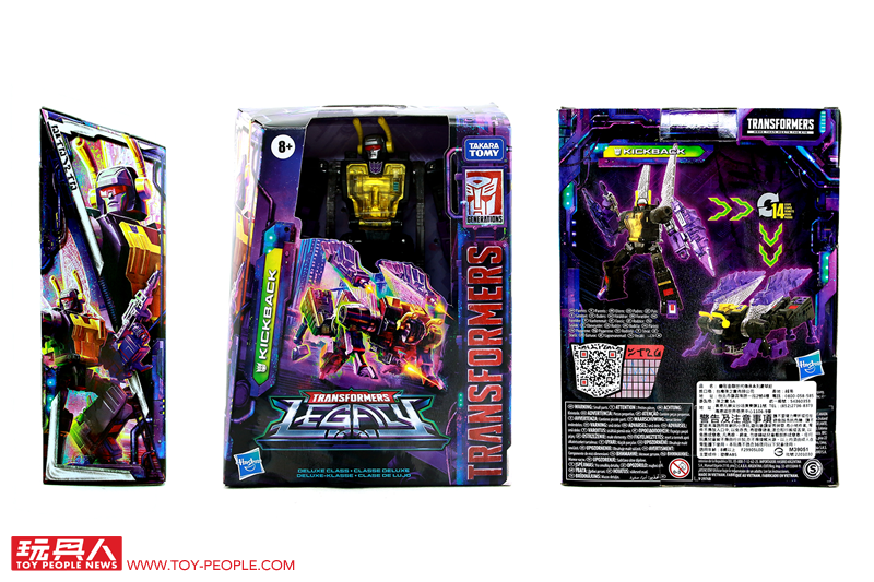 ▼「神腿」(Kickback,或譯作反衝),狂派昆蟲金剛(Insecticons)的一員,非常擅長以言語從「朋友」身上敲詐訛取利益和情報,並趁機利用那些不小心洩漏的秘密反過來勒索,直到那些「朋友」再也沒有一絲的利用價值,可以變形為機械蝗蟲,並利用強大的跳躍力進行偵察與作戰。本次的傳承版,乃是繼六年前的傳奇級(Legends Class)後,官方首次以豪華戰將的尺寸重新詮釋G1經典的造型。