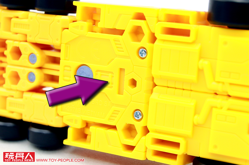 ▼沒錯,這正是為了大合體所設置的機關,與2015年的合體戰爭(Combiner Wars)版本不同,看樣子手臂的關節另有安排,並不在搶劫的身上,我們可以期待更還原動畫的貼皮式合體囉!!
