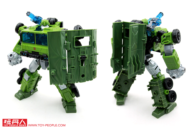 ▼「領袖之證 鐵漢」(Prime Universe Bulkhead,或譯作隔板),取材自《變形金剛:領袖之證》。這位綠色壯漢最初是2008年《變形金剛進化版》(Transformers: Animated)中登場的角色,擅長太空橋的建造,在《變形金剛:領袖之證》中則是取消了這個設定,將他重新打造成一個重情重義、溫和粗心的大個兒,雖然曾經作為博派敢死隊-雷霆拯救隊(Wreckers,或譯作回收救援隊)的一員,但他對於生命的關懷始終沒有讓他變成無情的殺人機器,這也讓他成為柯博文(Optimus Prime)不可或缺的忠心戰友。本次的傳承版同樣是以經典產線的風格重新詮釋鐵漢的造型,從原本的流線樣貌搖身一變成為有稜有角的現實風,可變形為類似Rába H18的六輪軍用卡車。