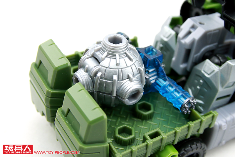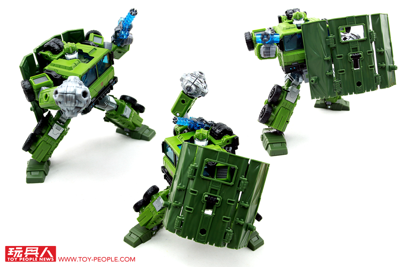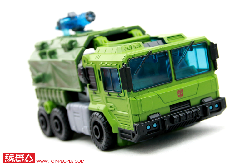 ▼載具模式,頗有真人電影版探長(Hound)的影子,雖然從圓滾滾的裝甲車變成了方方正正的軍用卡車有點小不習慣,不過變形機構的精彩卻完全彌補了這點,非常推薦各位親自體驗設計師的用心!