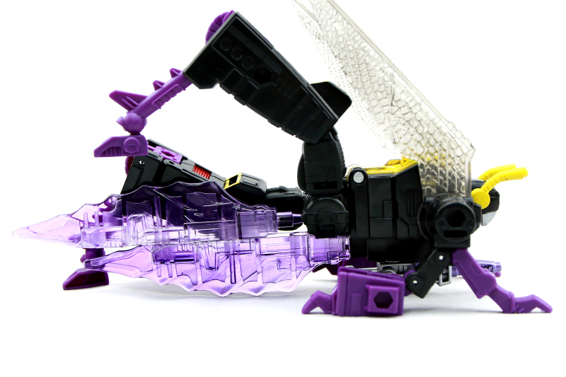 ▼機械昆蟲型態,變形機構的設計並不複雜,能量刀也能收納在翅膀上,妖豔的紫色讓他更具魅力。