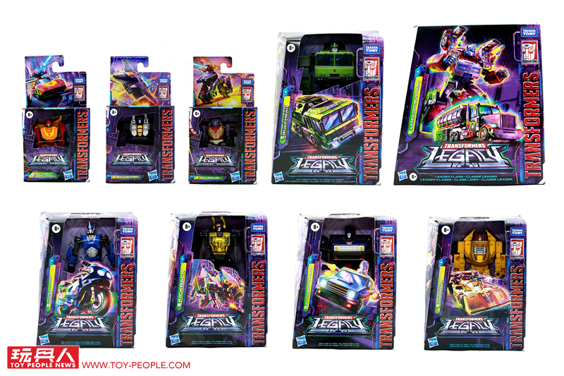 ▼本篇開箱報告的主角們,尺寸由小到大分別包括了三款核心級(Core Class)、四款豪華戰將(Deluxe Class)、一款巡弋戰將(Voyager Class),以及一款無敵戰將(Leader Class)。
