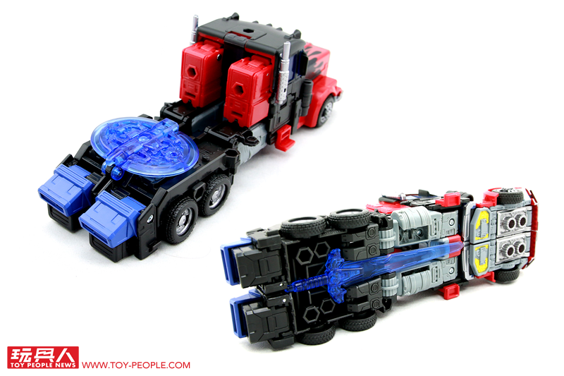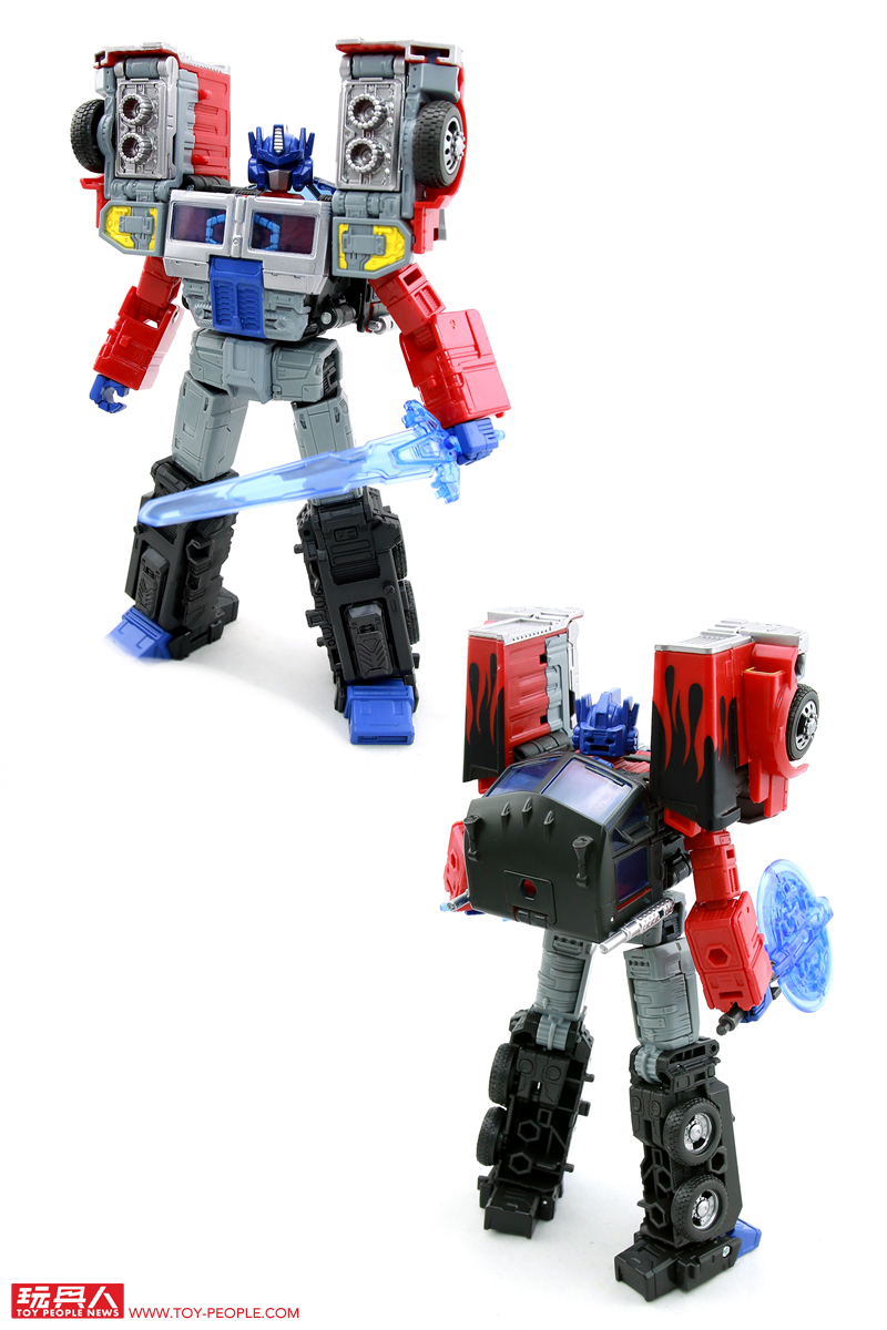 ▼雙肩的前方可以打開並展現透明零件製的導彈發射艙,油罐車頂上的雙管槍也能在機器人型態下使用,兩柄能量晶武器不僅能獨立拿持,也能合成更強大的超能量巨劍!