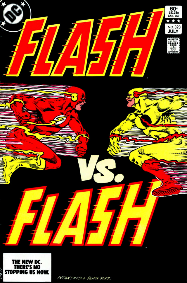 而這一幅是由Paul Shinn所創作,致敬DC Comics於1983年出版的《The Flash》#323封面,原本是閃電俠與反派逆閃的對決封面,在Shinn的筆下則是改為了音速小子與夏特。
