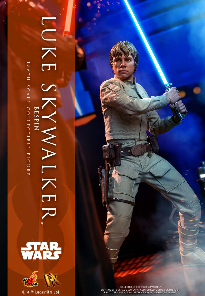 即使還沒完成尤達的訓練,「路克·天行者」依舊為了解救朋友而從達可巴前往貝斯平的雲城,並與達斯·維達展開死戰!而身穿杏色套裝的路克也成為他的經典造型之一;本作高約 28 公分,全身共計 30 處可動,依照電影設定量身縫製那套在雲城行動時所穿的服裝,口袋的縫線細節、腰帶與小包的皮革紋理、掛在腰際的光劍柄、長靴的舊化污損......皆考究還原,頭雕可藉由可動眼球把玩出不同的神韻,兩款棕色雕髮零件更讓變化性再提升。