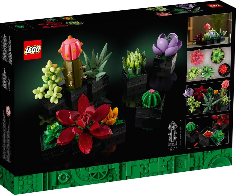 如果說「10311 蘭花」是延續「10289 天堂鳥」優美造型與風格的絕佳續作,零件數來到 771 片的「10309 多肉植物」則是往另一個方向展開的出色模型,本作一共包含了 9 種色彩繽紛的迷你多肉植物,除了可以各自獨立擺放之外,統一的方正黑盆器也讓這些植物能夠很好地放在一起展示,仙人掌超可愛!值得一提的是,包裝盒正面還標示了能夠 1~3 人同時遊玩的圖樣,跟著家人、好朋友一起組裝這些樂高多肉吧~