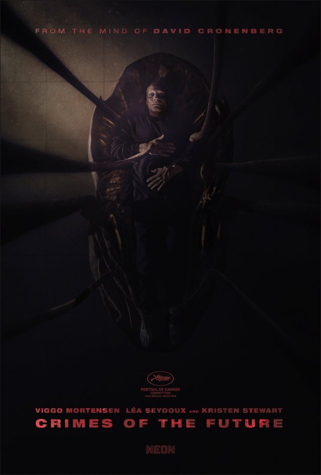 大衛柯能堡(David Cronenberg)繼《寂寞星圖》(Maps to the Stars)後睽違八年的全新長片作品《未來的罪行》(Crimes Of The Future)今同步釋出了兩款預告片、劇照、及宣傳海報,同時也確定會是本屆坎城影展的競賽片之一。
