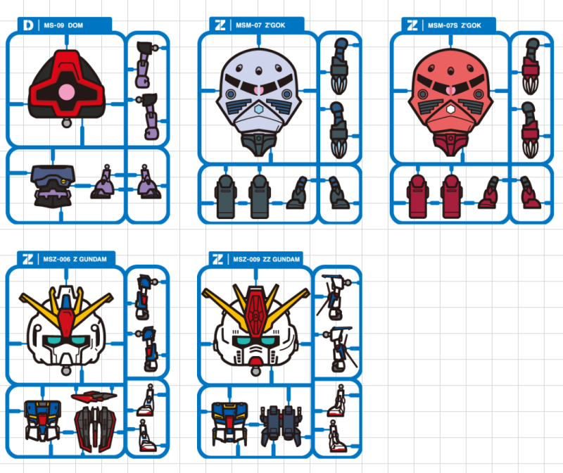 除了目前短片中登場過的鋼普拉君、薩克君、夏亞薩克君、v鋼普拉君外,目前也已經設計出 Z 鋼彈、ZZ 鋼彈、亞凱、古夫...等多數宇宙世紀機體,真的很希望能像短片中那樣推出實際的組裝模型商品。