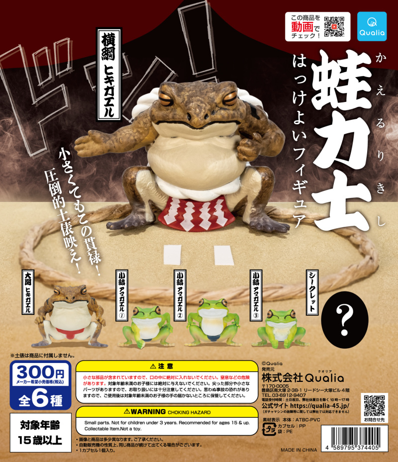 日本趣味轉蛋公司Qualia(株式会社クオリア)將以日本傳統競技項目-相撲為主,推出結合動物蛙的「蛙力士」轉蛋!一共有五種款式 + 隱藏版,參考售價為一轉 300 日圓,預計 2022 年 04 月發售。