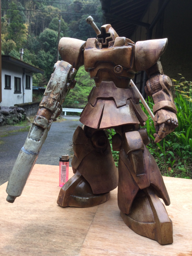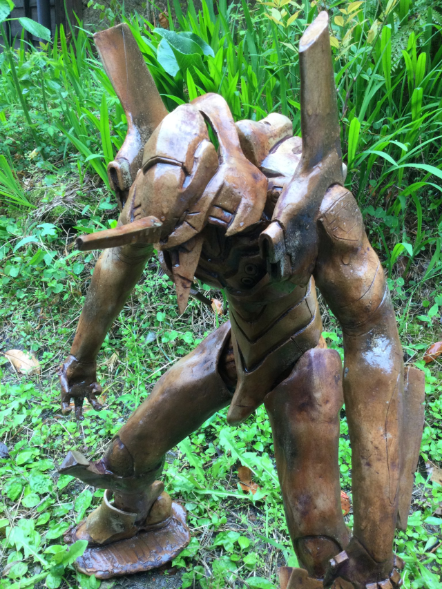陶藝家上村慶次郎(@2Grq2X6QEhyNon0)以塑陶的方式來創作出獵魔鋼彈,其完成度真的是能讓看到的人都佩服得五體投地,不論是身形、頭部的細節、甚至身體上的機械特徵都完整重現,再加上是陶器的顏色,有種獵魔鋼彈歷經百戰已成生鏽機體的感覺,而作者製作的大小約為50~60公分左右。