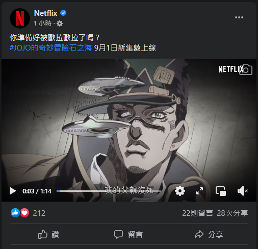 於串流媒體Netflix在2021年12月起開播的《JoJo的奇妙冒險》系列第六部作品《JoJo的奇妙冒險 石之海》,在日前官方終於在粉絲敲碗催促之下釋出了苦等已久的Part 2動畫正式預告與視覺海報後,在今日稍早總算是敲定了該部熱門動畫的開播時間。