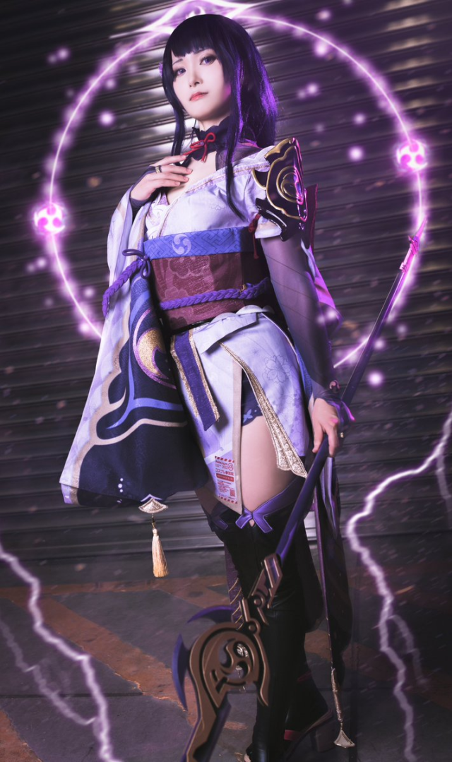 《原神》中的雷電將軍,真名為雷電影,魔神名巴爾澤布,是稻妻現任的魔神,取人偶「雷電將軍」的形象。她居在「一心淨土」之中。自從實裝以來,美麗的造型搭配獨特的拔刀姿勢-從胸部拔出,一直以來都是許多 Coser 喜愛的角色,也是在 Pixiv 網站上許多人創作繪圖的對象。