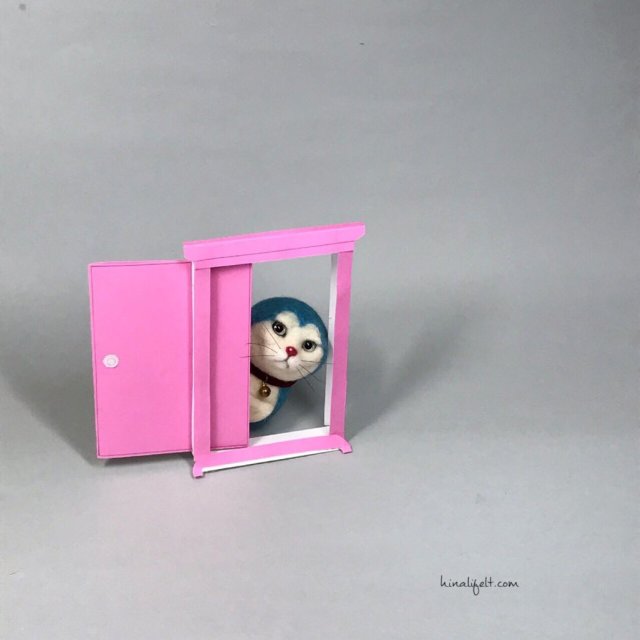 日本的羊毛氈作家「Hinali」,就做出了這樣奇妙的搭配,不但作工精細到無可挑剔,更連「哆啦美沒有鬍鬚」(因為哆啦美的雷達是在蝴蝶結上)的小細節都不忘重現。只是也或許是因為太過寫實,反而讓人有點「恐怖谷」般的感覺啊!