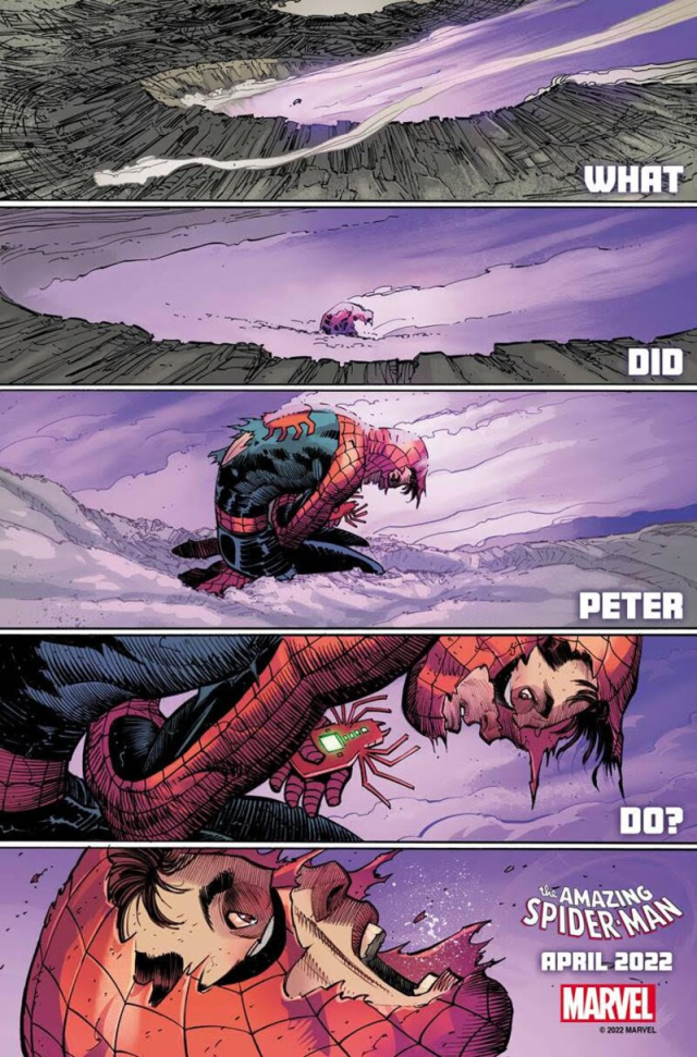 彼得‧帕克全新又大膽的人生新章節將從這星期的第一期開幕。這個新連載的第六期同時也是所有《蜘蛛人》連載的第九百期紀念故事,彼得將遇上融合了經典反派組合「邪惡六人組(Sinister Six)」的全新版本的「適應體(Adaptoid)」!