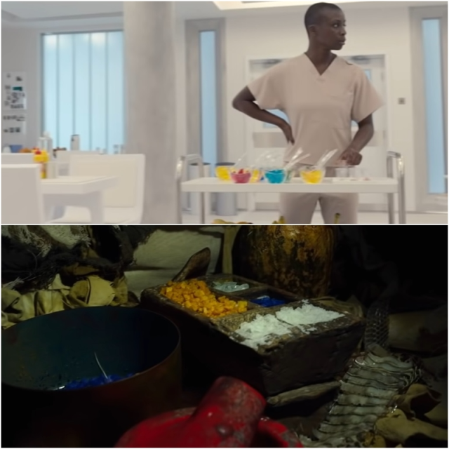 9. 紅黃藍色系 精神病院中的水果、果凍等有顏色的物體,都對應了陵墓中製造木乃伊的顏料罐。