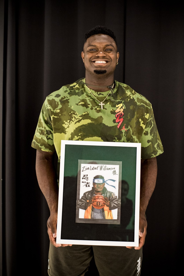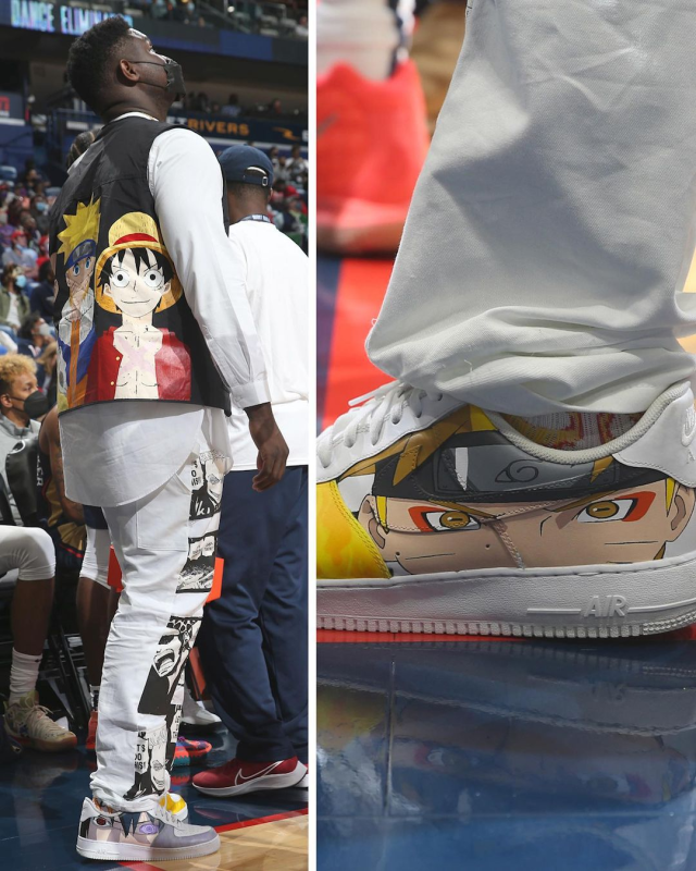 ▼ 先前在場邊也看到 Zion Williamson 穿著印有《火影忍者》&《航海王》的服飾。