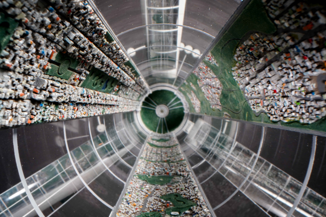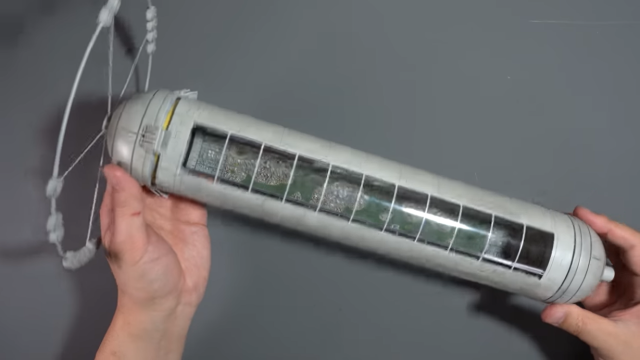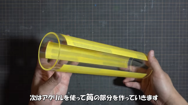 推主選擇製作大小 1/100,000 的比例來打造「太空殖民地」,使用現有的素材來拼裝製作,像是下圖這個長條形的壓克力瓶子,就是他去雜貨店看到認為可以拿來製作殖民地的素材 XD。