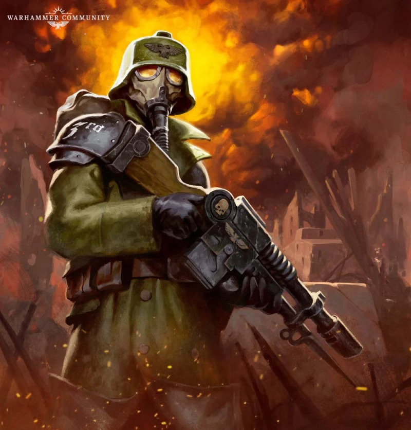 星界軍中最具人氣的就是克里格死亡兵團,該軍團的防毒面具造型是一大特色,令人聯想起第一次世界大戰時的壕溝戰風格。 由於過去行星克里格的獨裁者企圖於帝國中獨立,雖然叛亂的野心很迅速地就被粉碎,但也導致克里格成為一個充滿毒氣的荒蕪之地,使得存活下來的人們不得不躲藏於地底碉堡或置身於輻射污染的威脅。 最終,死亡兵團從被毀滅的家鄉中誕生了,背負著先人曾犯下的叛亂重罪,死亡兵團全員視戰死為光榮贖罪,憑藉著此鋼鐵般的意志以及不計代價的自殺式人海衝鋒,抗衡宇宙中的各種強大勢力。