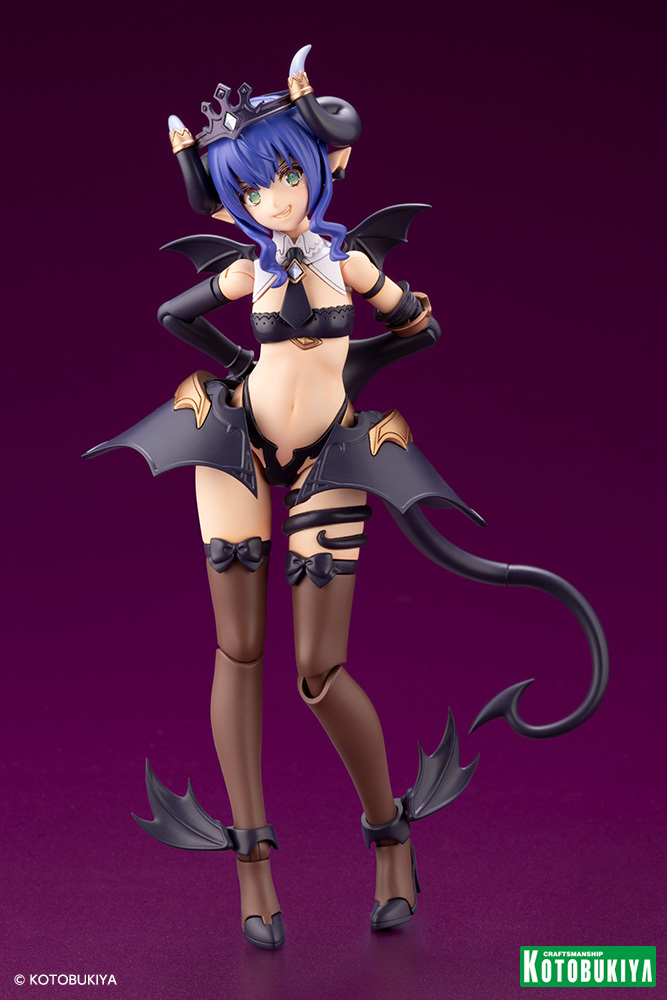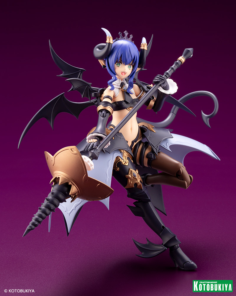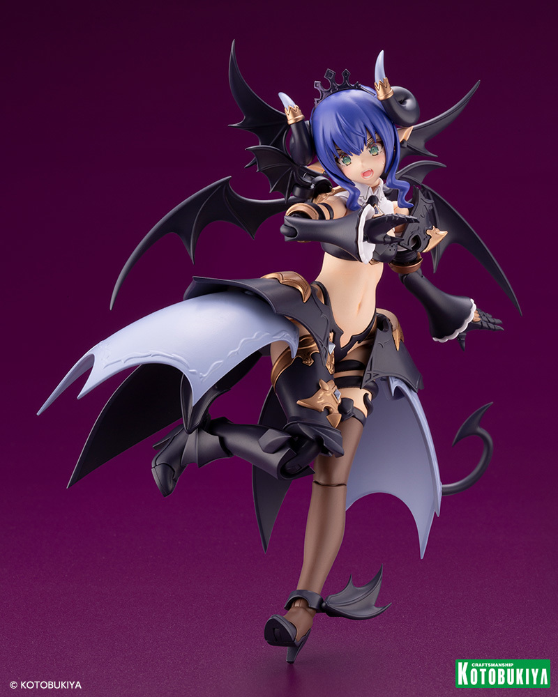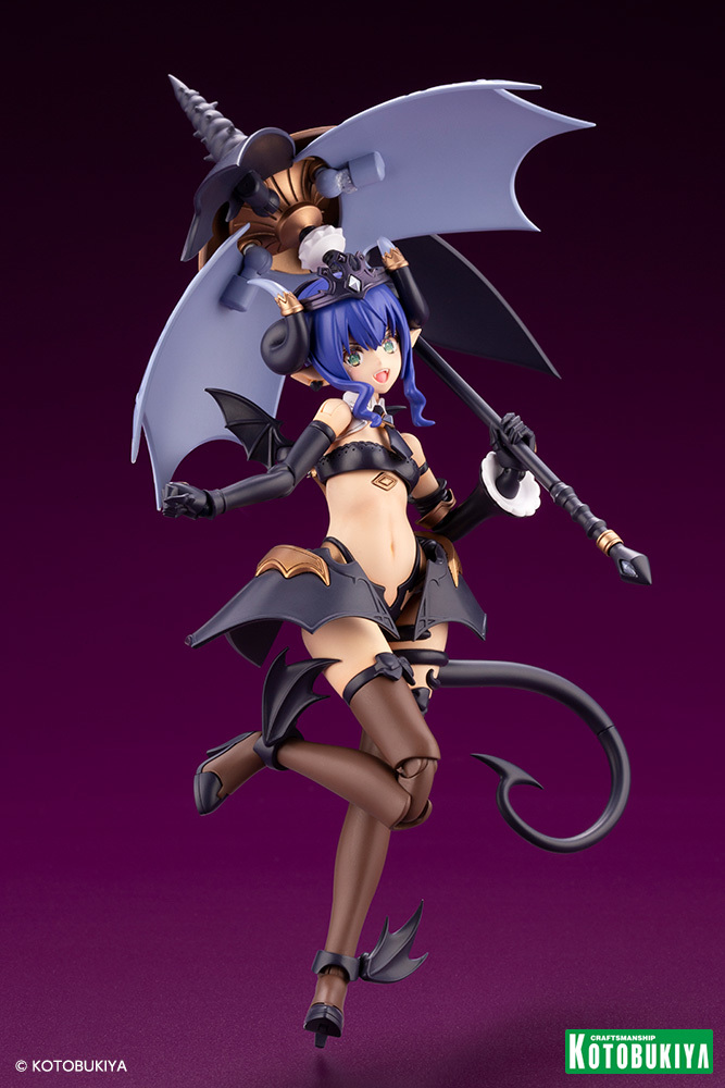 第二彈角色「VELRETTA」已公開上色試作品圖,將於近期開放預購。相對第一彈露米蒂雅的天使形象,VELRETTA 融入了完全相對的惡魔設計,也有著相反的個性。服裝部分採用高露出度的設計,並擁有可動的惡魔翅膀和尾巴,此外還能加裝花瓣般的大型裙襬、更多翅膀與長槍武器,長槍能與裙襬零件組合成一把可愛的陽傘。