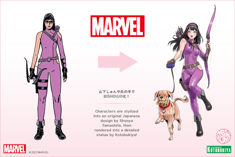日本玩具公司壽屋與日本插畫家山下俊也(山下しゅんや)合作的美少女模型品牌「BISHOUJO」發表了「MARVEL美少女」系列的最新商品,次世代鷹眼「凱特·畢夏普」(ケイト・ビショップ)以 1/7 比例 PVC塗裝完成品的姿態登場!預計 2022 年 11 月發售。