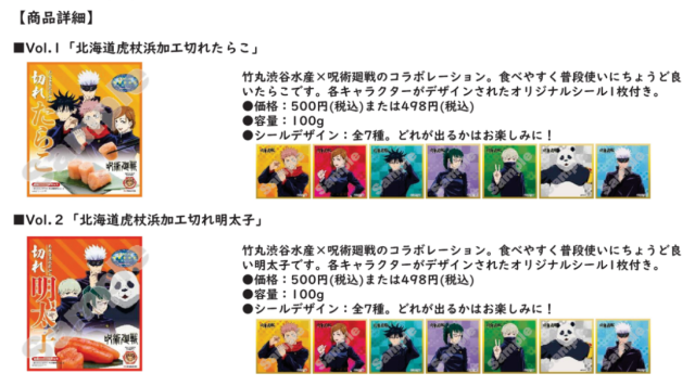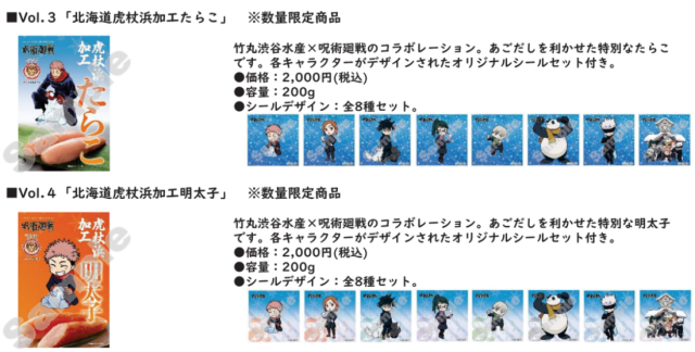 當一部作品變得有人氣、熱門起來後,許多廠家都會紛紛向這部作品進行許多合作企劃,以增加作品知名度與合作廠家的人氣,而這次又是《咒術迴戰》的回合。這次與之合作的是「海產」!