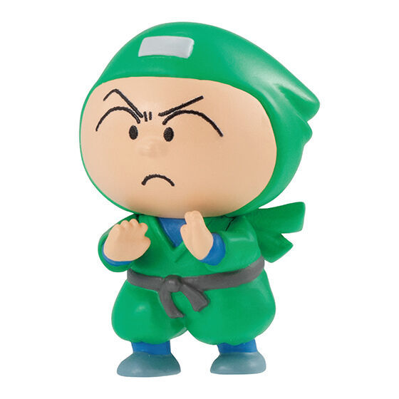 這款轉蛋將大家熟悉的春日部防衛隊的成員們,全部都改穿忍者服裝的造型,包含小新、妮妮、風間、正男和阿呆,總共五位角色的款式,每一位都身著相當鮮豔漂亮的忍者服裝,擺出像是要使出忍術的動作,非常可愛,是喜歡蠟筆小新的朋友們,值得收藏的一套轉蛋。