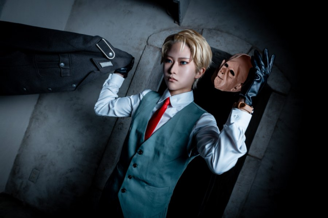 另外他也與 Coser 友人-奏汰 ( @sirakiinsousi ) 及まかろに ( @macaro_ningen ) 一起扮演佛傑一家三口,也用劇中情境,還原三口互動的場景。