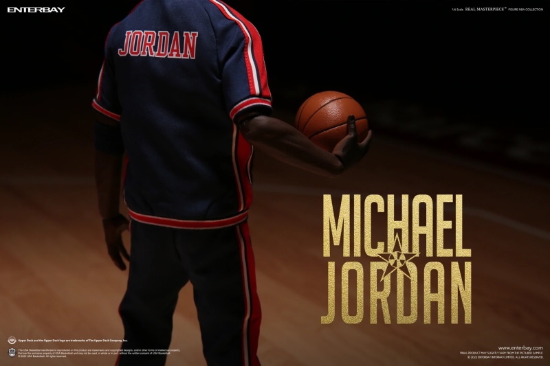 而這款ENTERBAY所推出的產品,就是將當時身穿美國隊球衣背號9號的喬丹實體化的1/6比例立體可動雕像人形玩具,除了喬丹本身的素體,還有上場球衣與熱身衣各一套可以替換,另外也有1/6比例的籃球、和專屬展示用台座,以及多組替換用的手部零件,與護腕護膝等等配件,喜歡喬丹的朋友,值得當作收藏的參考喔!