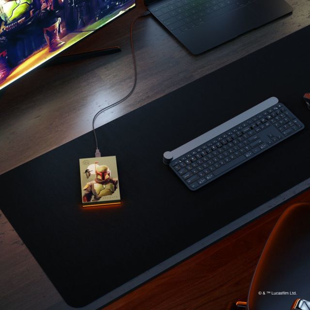 這三款特別版 FireCuda 外接硬碟加入《星際大戰》Beskar™ Ingot Drive 的行列,透過三種獨特的美學設計,分別呈現出不同傳奇角色的獨特個性:傳奇賞金獵人波巴·費特帥氣無比、古古快樂淘趣,以及曼達洛人榮譽至上。硬碟上搭配可自訂 RGB LED燈效,且各款設計均預設不同角色的代表燈光色:波巴·費特是耀眼無比的紅色、古古是絢爛的藍色、曼達洛人則是大膽無懼的深藍色。這三款硬碟皆提供可自訂的燈效功能,讓遊戲玩家和《星際大戰》愛好者即使在家也能向遙遠銀河系致上最高敬意。