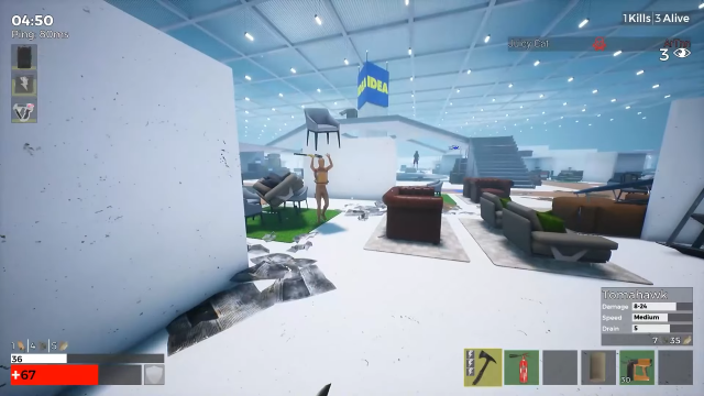 可能你小時候那古靈精怪的小腦袋瓜中,曾經幻想過在一個空曠著馬路上,持著衝鋒槍上陣殺敵的模樣,或者是在某一商場裡直接上演「大逃殺」。而最近在Steam上,上架了一款免費的大逃殺遊戲《Retail Royale》,不僅可以讓你持槍上陣,玩家還能在IKEA內,四處拿著任何武器大殺特殺。