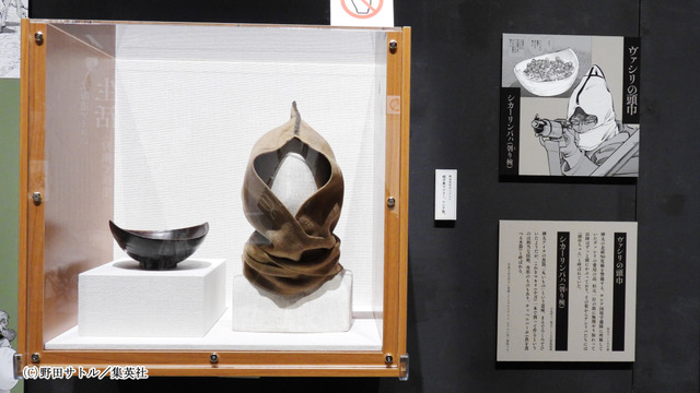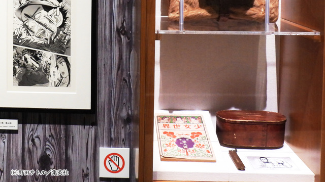 除了插圖外可供觀賞外,也放置了還原作品中人物的服飾配件,擺在展示櫃中供粉絲觀看。
