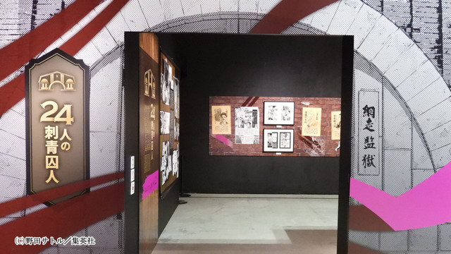 也將展區內的刺青逃犯主題區入口處布置為「網走監獄」樣貌,當然內部也包含著劇中場景的插圖給粉絲欣賞。
